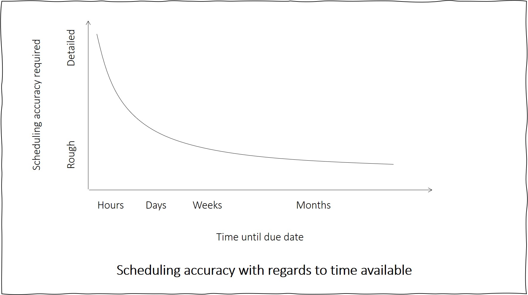 There is little point spending time scheduling to the nth degree, to re-do it eight more times.