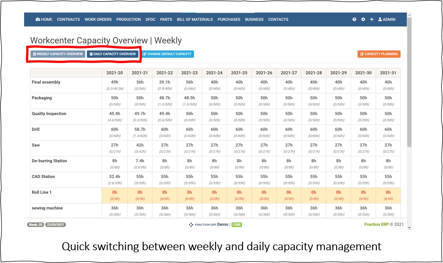 Fraction ERP has taken this approach on board. The Core package has weekly scheduling buckets to keep this process simple. The Advanced and Pro options have daily and hourly scheduling options.