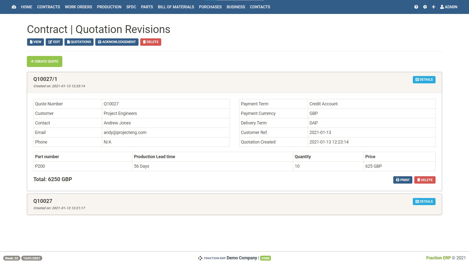 One of the features that we are proud of with Fraction ERP is the ability to create quick quotes, update them and manage the sales order book / enquiry book quickly.