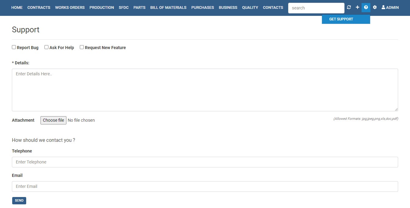 The ‘request new feature’ option inside the Fraction ERP app