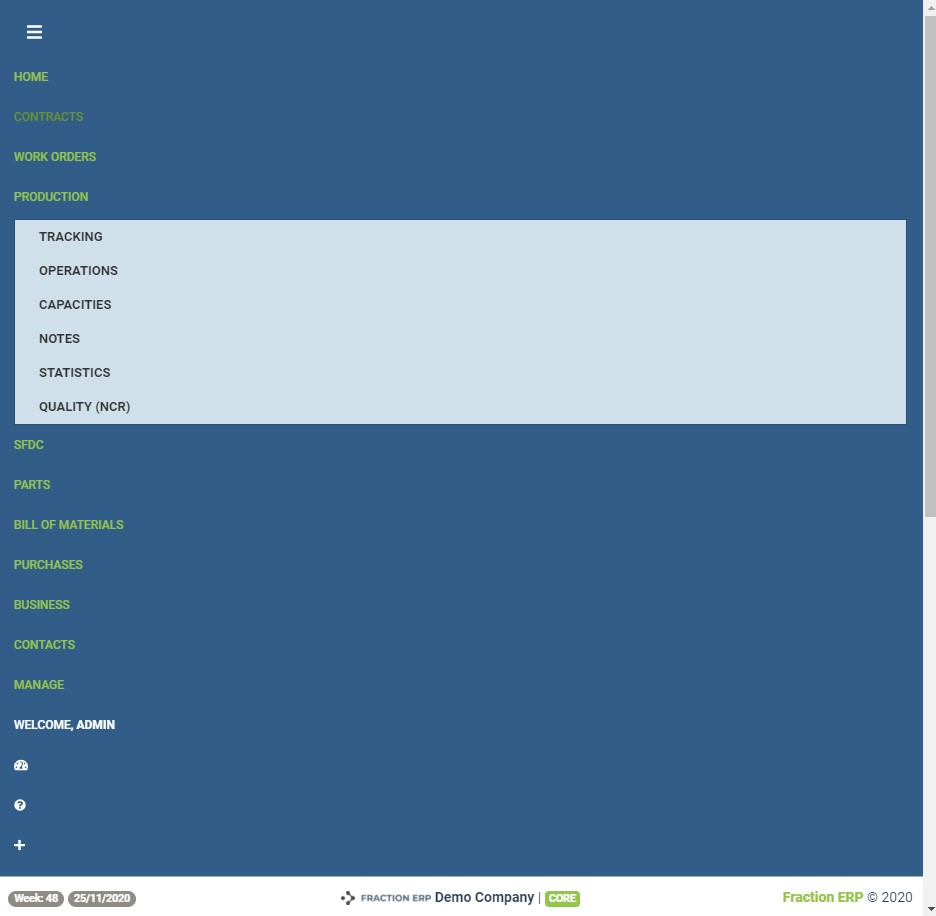 When you click on this icon, the full menu appears and full functionality of the Fraction ERP system is in your hands.
