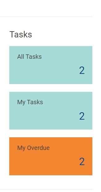 The tasks also flow through to the dashboard. The tiles show you how many tasks there are, how many are assigned to you and how many are overdue.