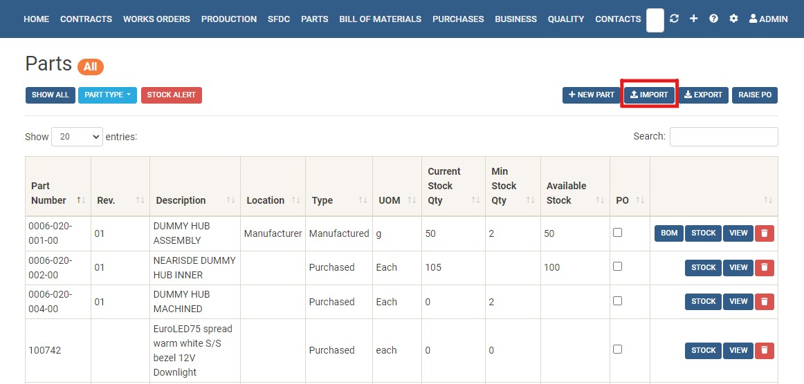 So, we’ve built an import function to allow the uploading of parts into our cloud ERP system.