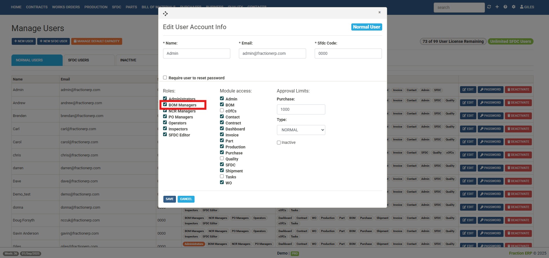 Controlling who can approve BOMs is just a couple of clicks in Fraction ERP
