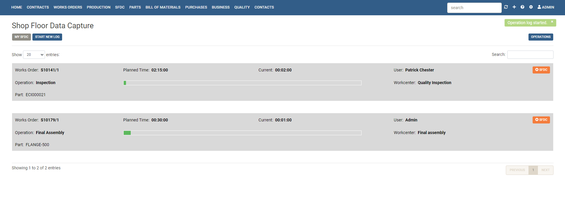 When you use shop floor data collection in Fraction ERP, our system shows you who is logged on to what job and how close they are to the planned operation times.