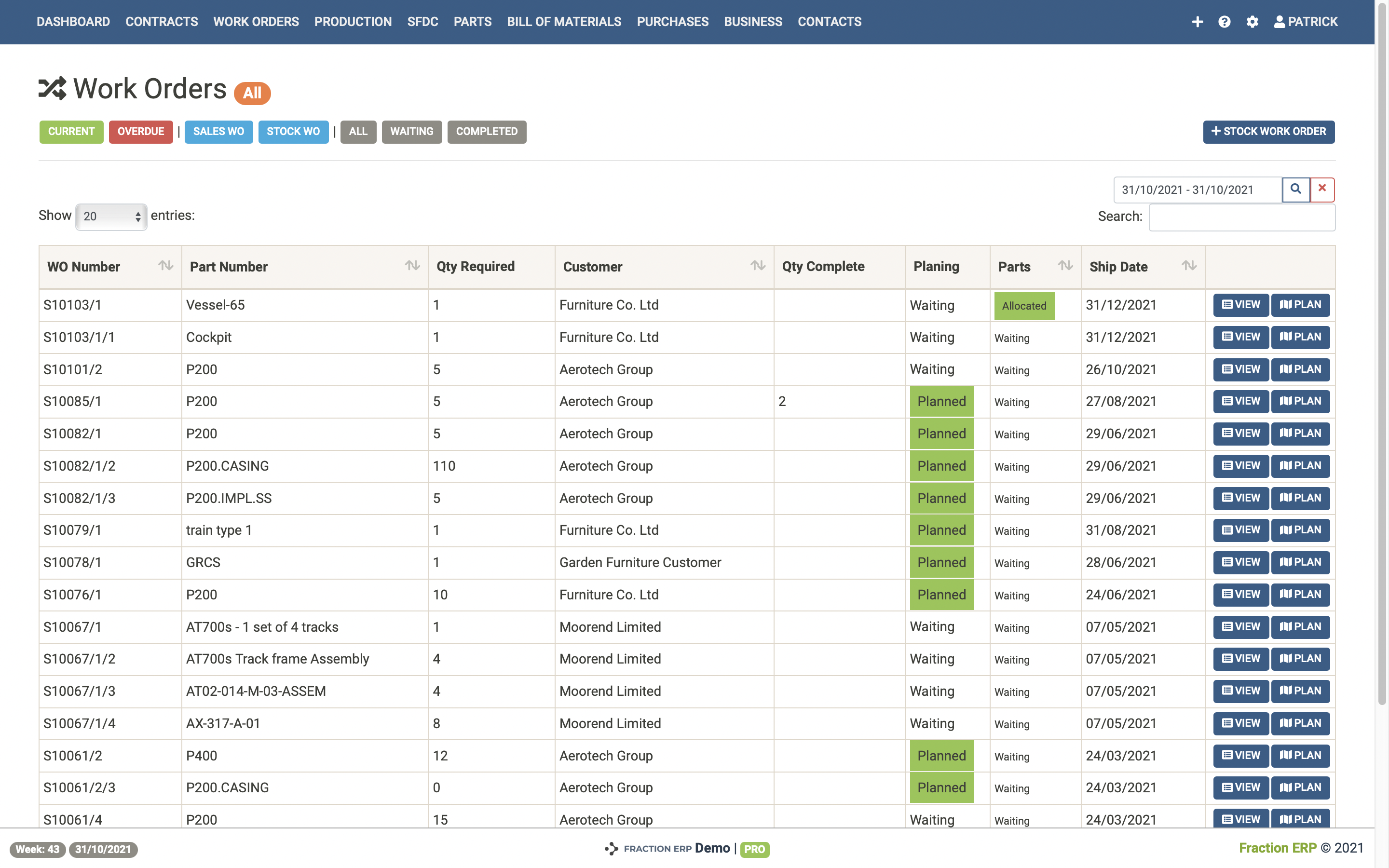 As the name implies, auto scheduling is leaving Fraction ERP to determine how the sequence of operations, across all work centres, should be laid out. We’ve built in some additional features, should that be a jump too far.