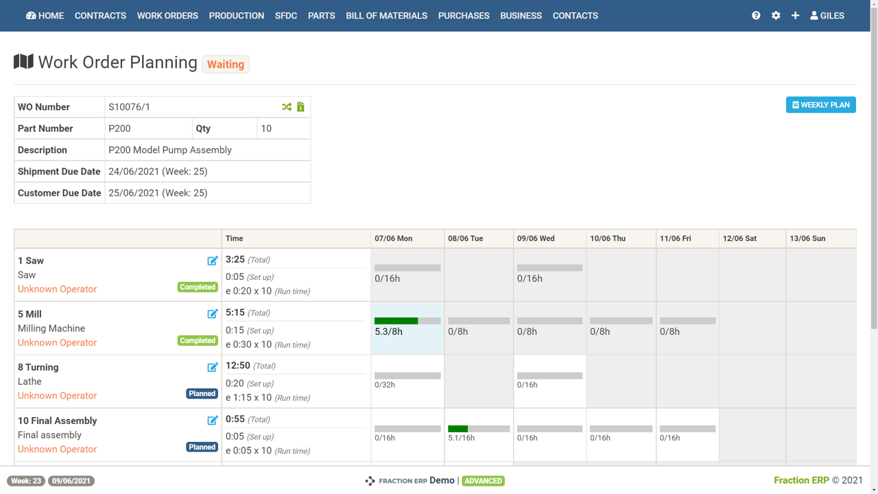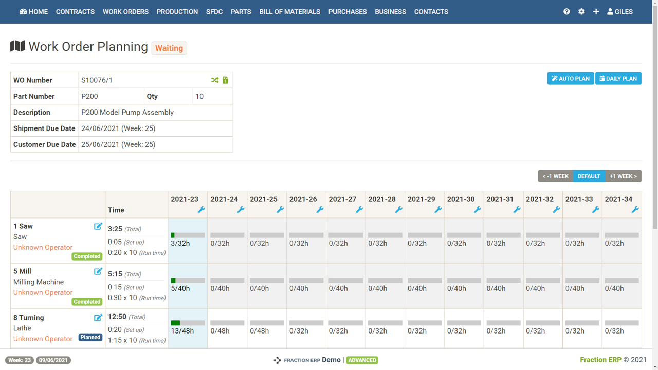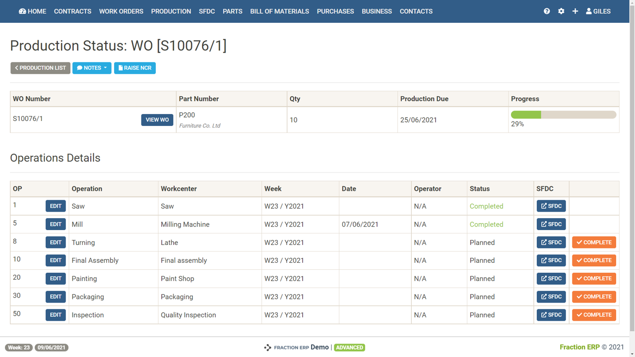 Saving time scheduling is just one part of the equation. If you can quickly create a schedule that is both efficient and effective, that is great. If you can also track production through your factory with the least amount of effort and highest amount of accuracy then you have cracked a big nut(!). Fraction ERP is designed to do this.