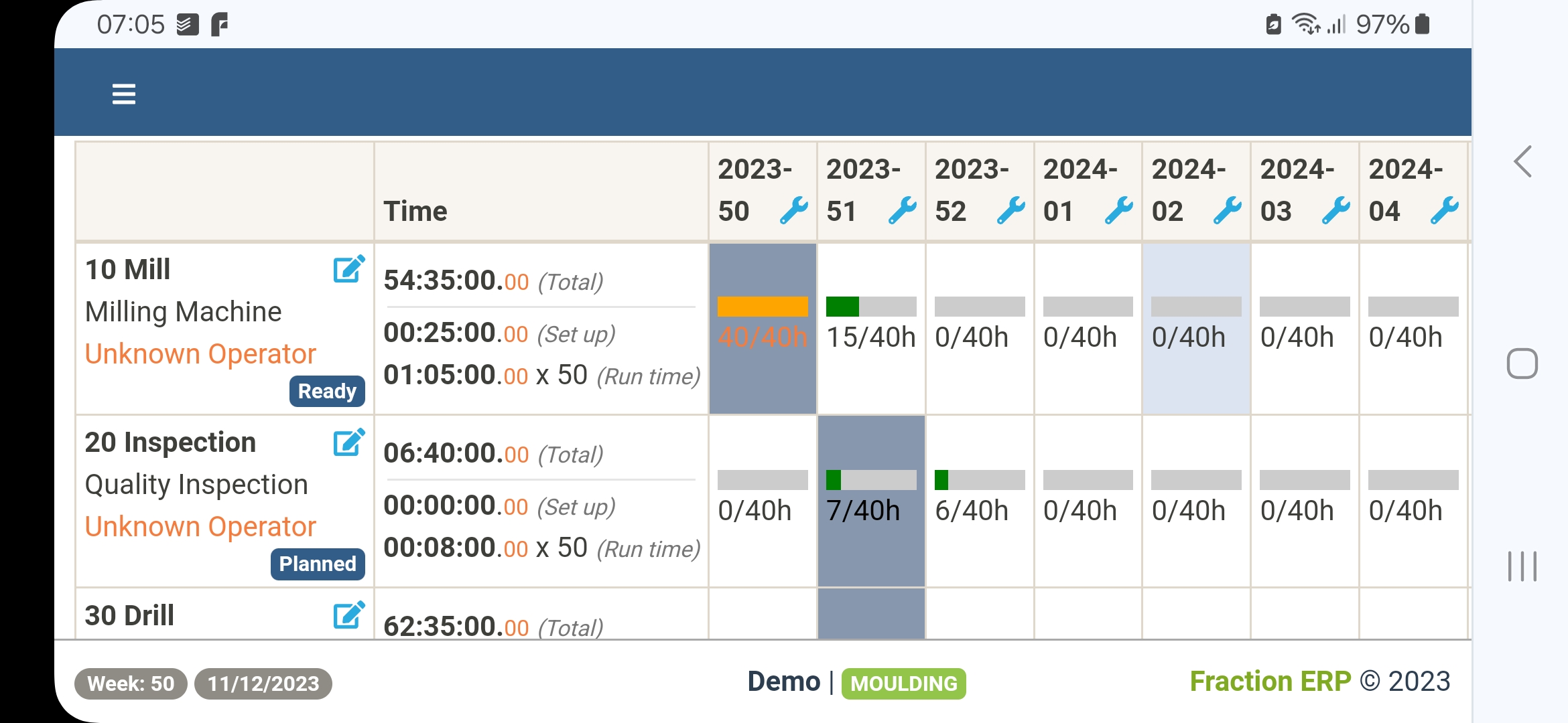 Manufacturing orders can be created, modified and launched on a smartphone if the desktop version is not available. This includes editing the bill of material structure and routing.