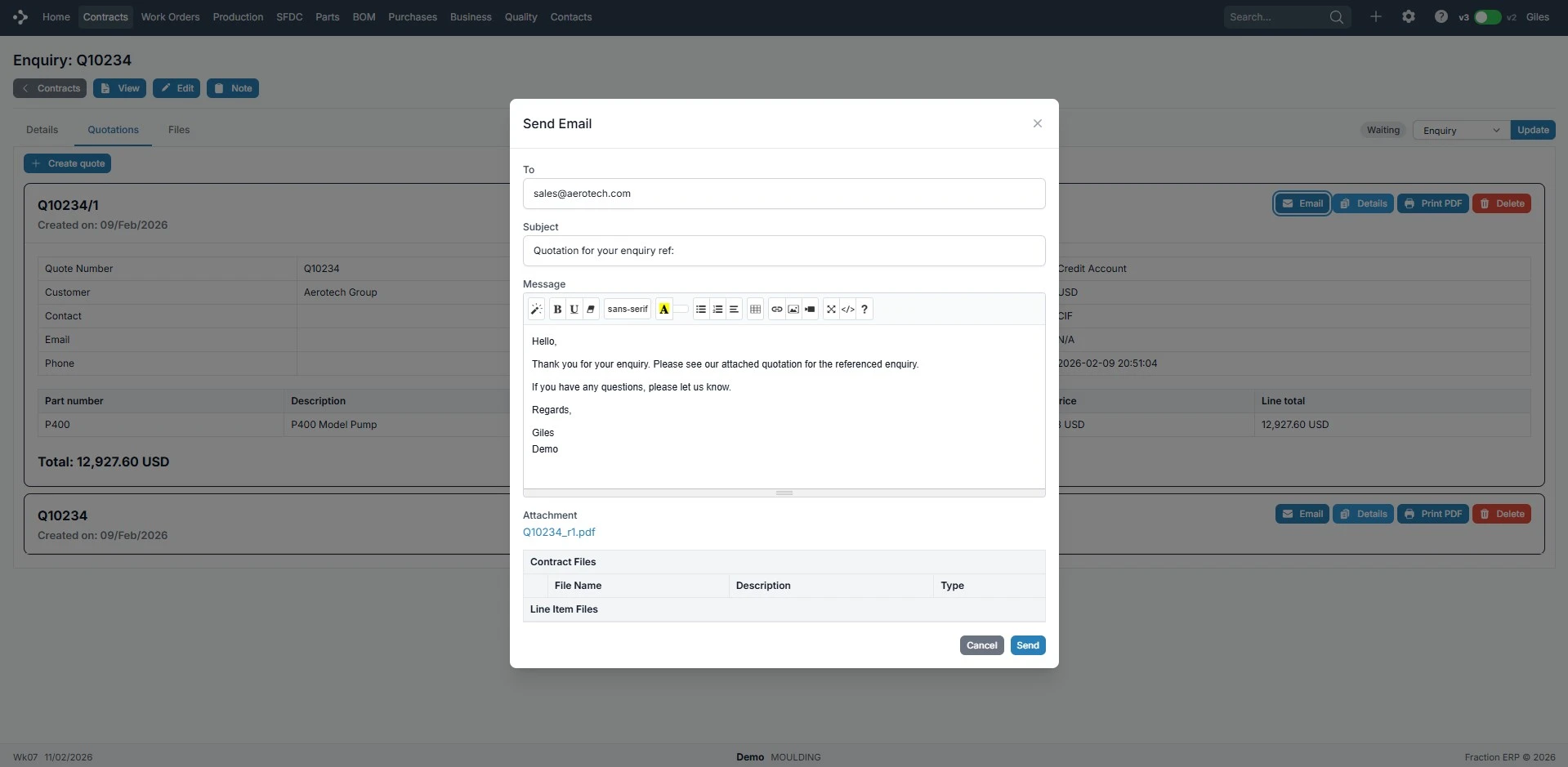 Once you have your quote ready to go, send it directly from our cloud ERP system. Just click on the email button, edit the email if you wish and send it off.