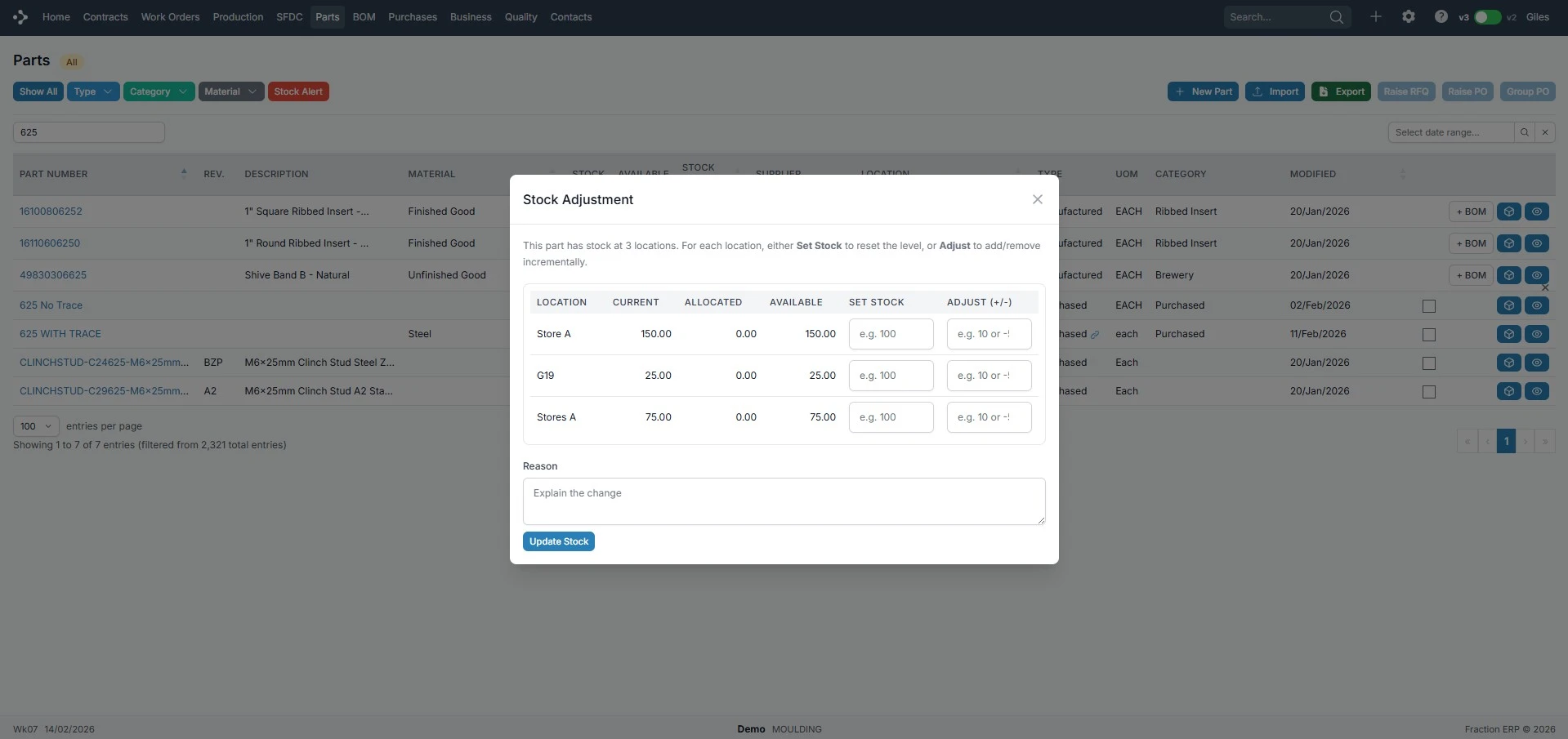 Define the stock locations your business needs and assign stock to more than one location if required. You can transfer stock between location with just a couple of clicks, helping you to maintain accurate stock information within Fraction ERP.