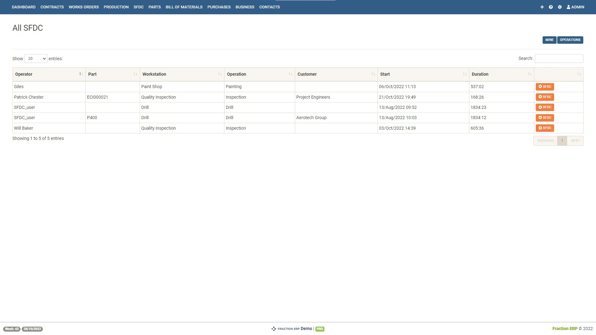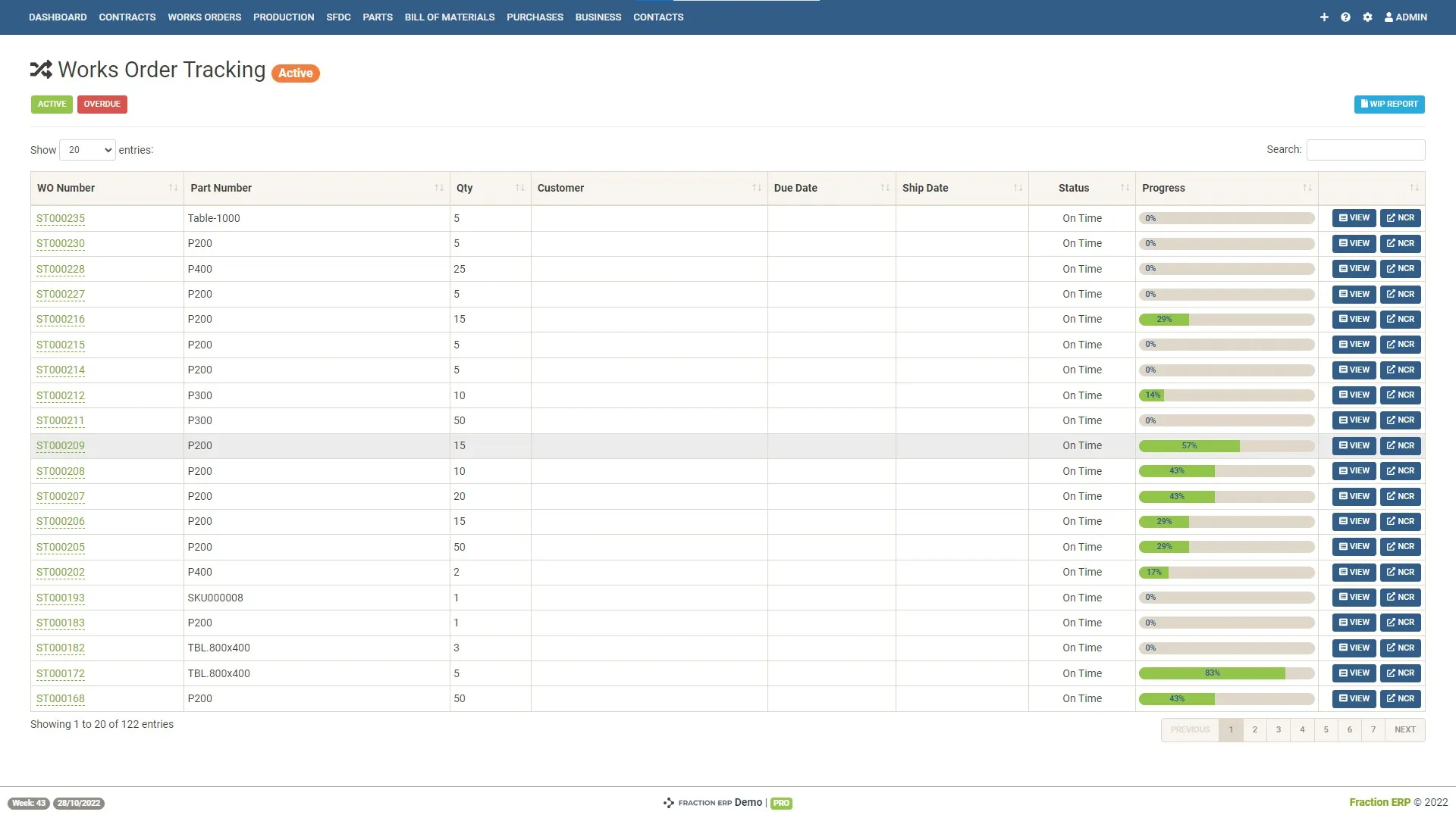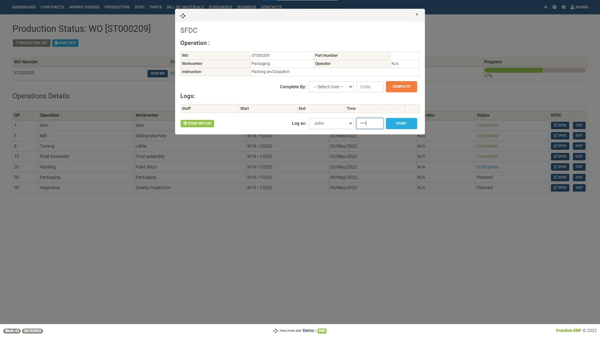 Operators can securely access Fraction ERP and log time and progress against your works orders. View progress against your production operations in real time.