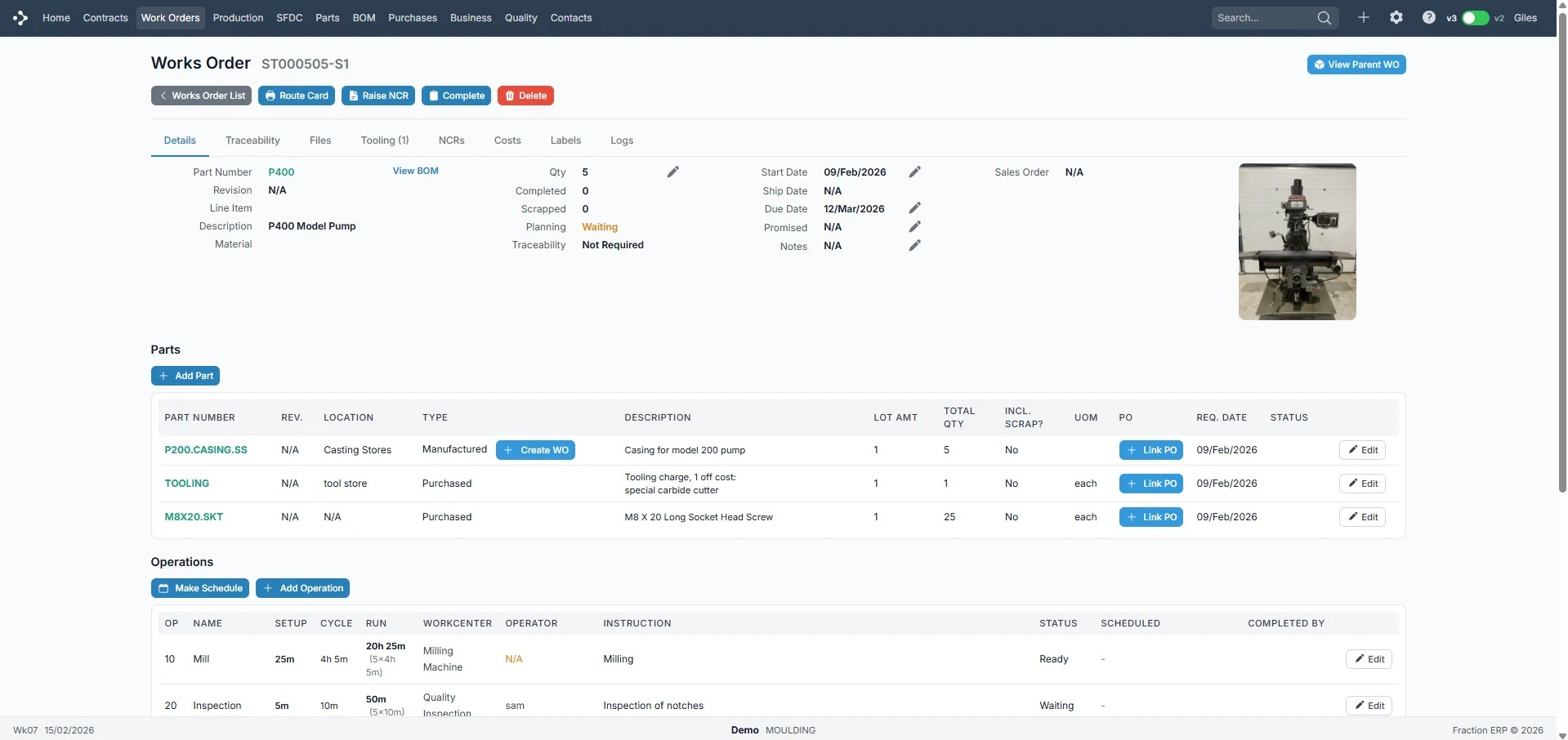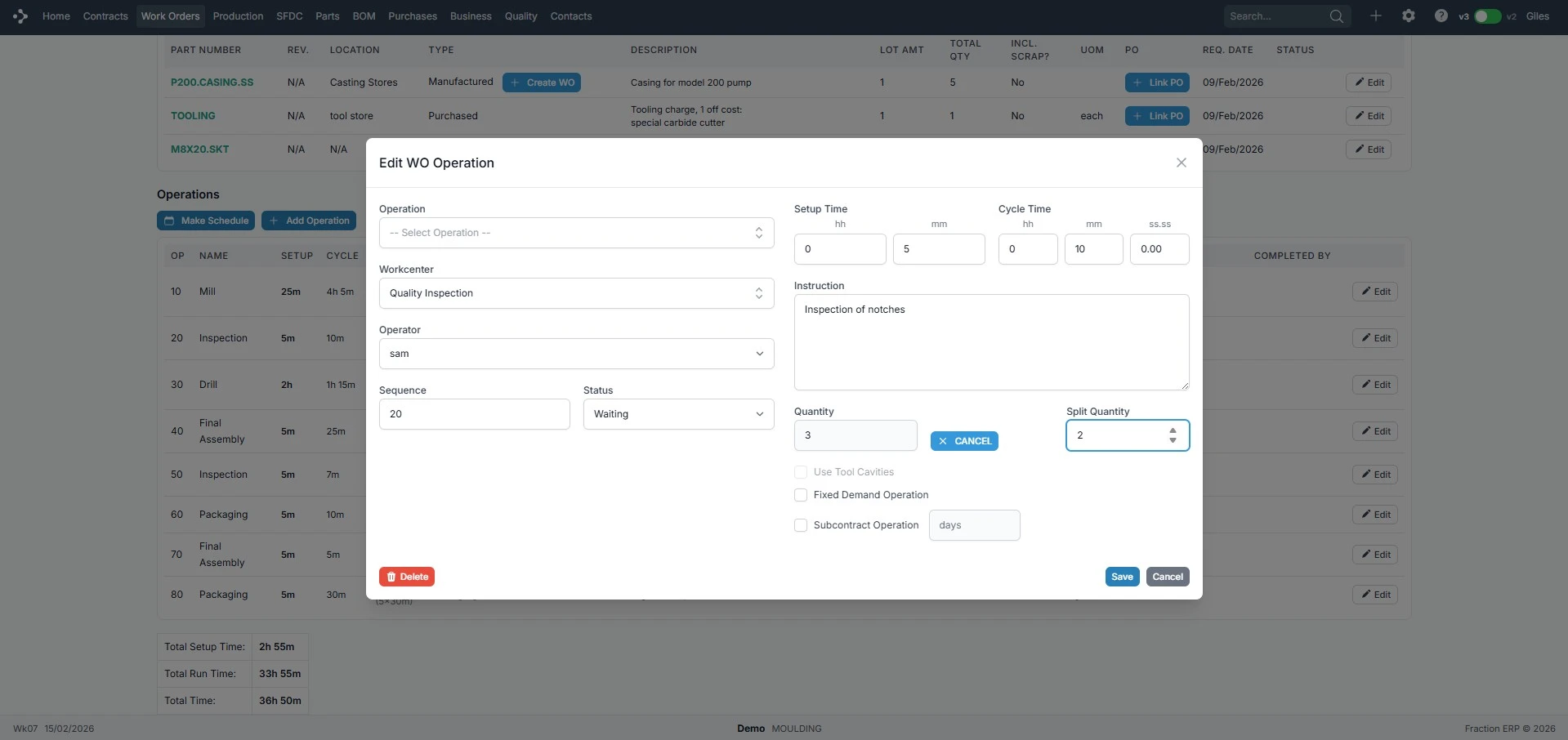 Ideal for jobbing and service shops. If you need to tweak an order mid-way through production, no worries. Edit the works order and you're back on track.